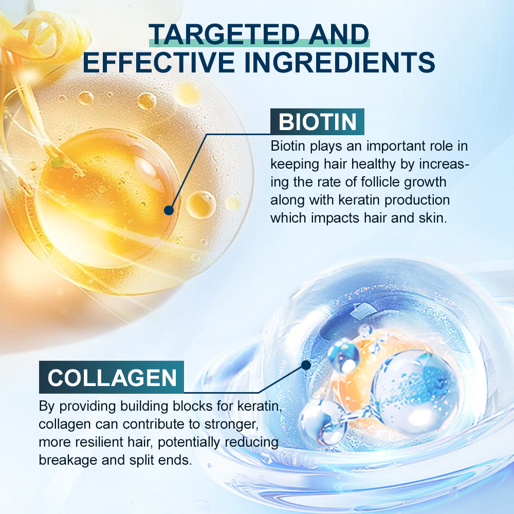 The product adopts light and delicate spray formula, containing 5000ppm biotin and a variety of precious hair care ingredients, which can instantly repair the damaged hair structure, enhance the luster of the hair, and make the hair thicker