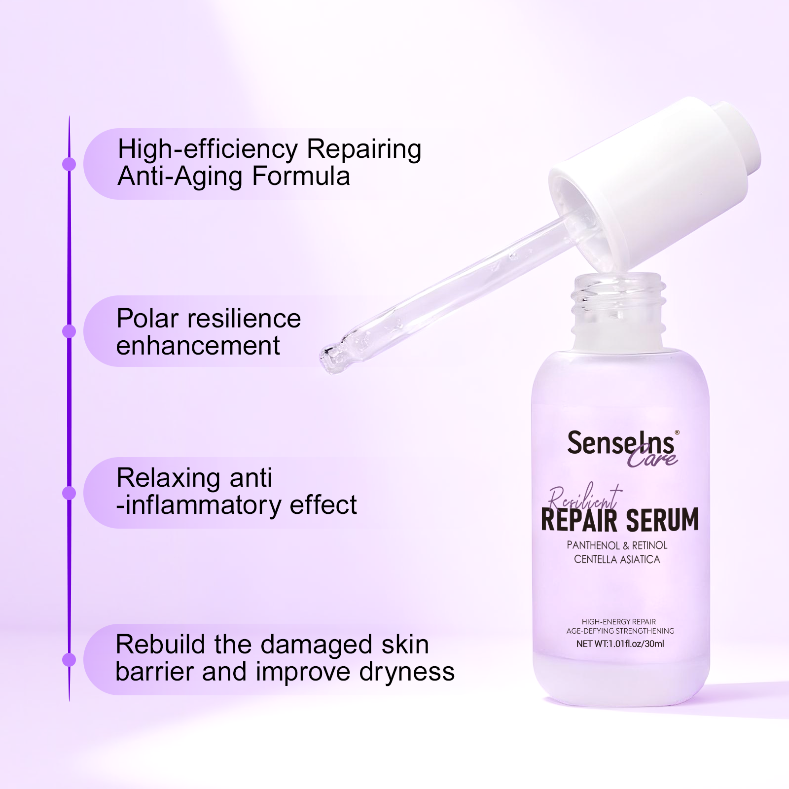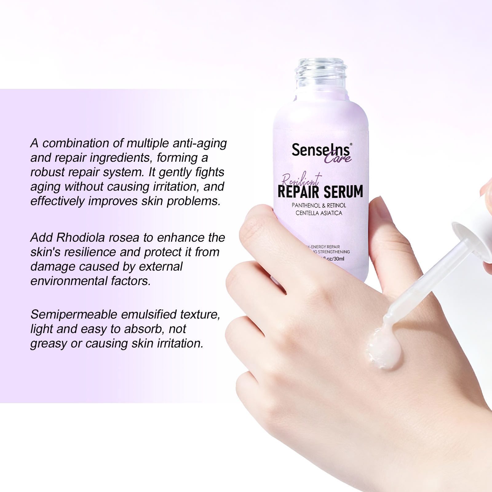 Efficient Repairing Anti-Aging Formula: A combination of multiple anti-aging and repairing ingredients, forming a strong repair system. It gently fights aging without irritation, and effectively improves skin problems.