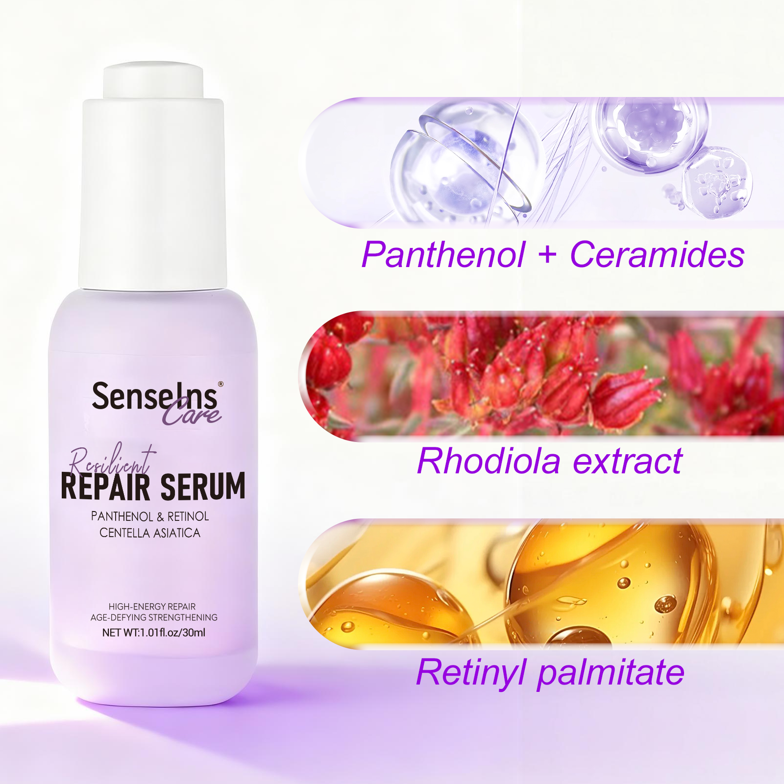 Rhodiola extract: Polar repair ingredient, helps the skin resist external oxidative damage and delays skin aging.