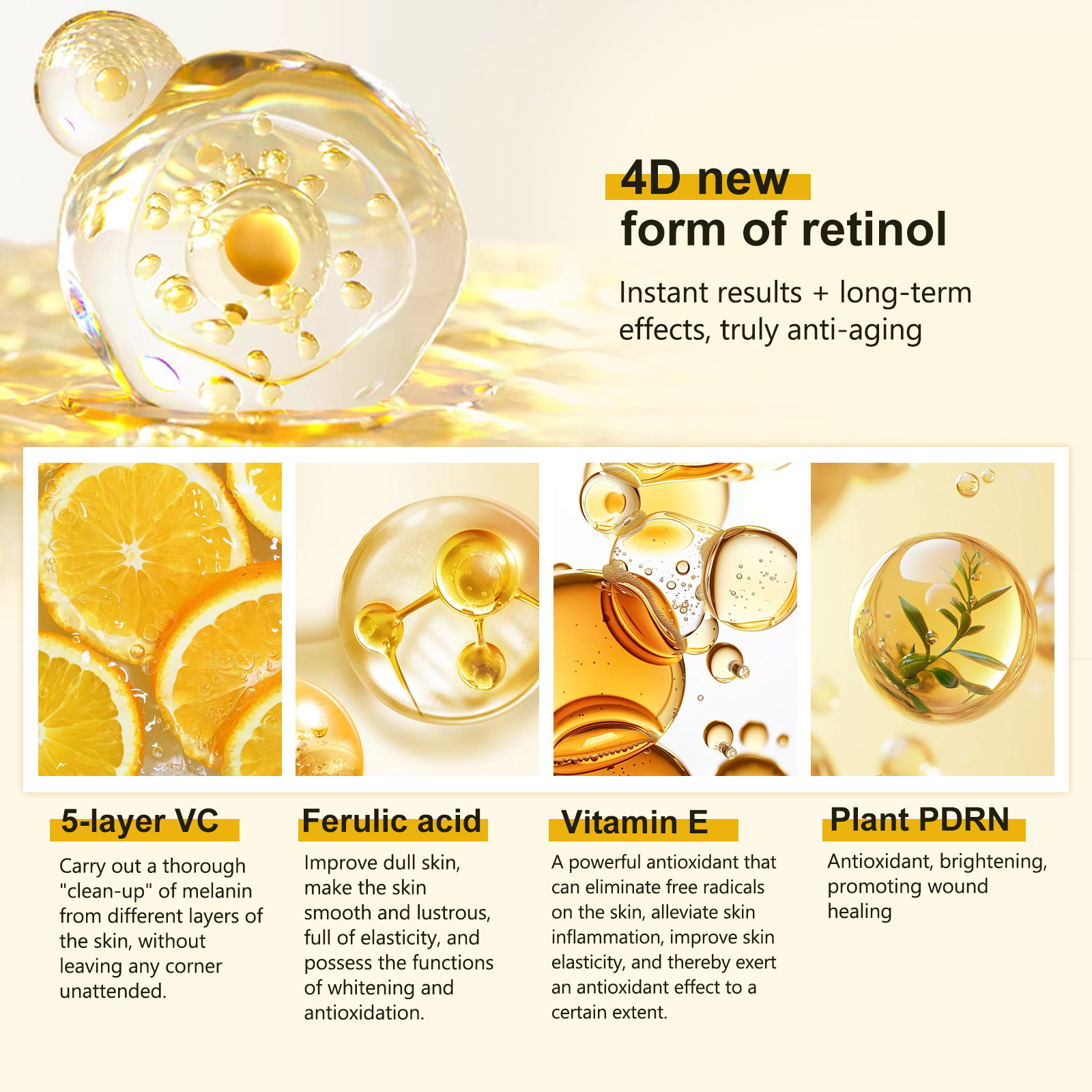【Product Ingredients】5 times VC, 4D new retinol, VE, oleanolic acid, tranexamic acid, glutathione, glabridin, plant PDRN
